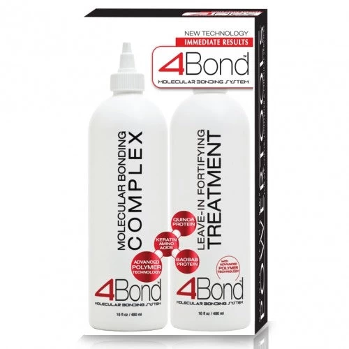 4Bond features four key ingredients infused into a uniquely crafted, easy to use system. It works with not only the newest advanced polymer, but infuses three additional ingredients within the hair shaft to ensure the shiniest, healthiest head of hair possible inside and out during all chemical & color services. 4Bond has been formulated with new protein technology and a never before seen molecular bonding polymer, unlike most brands that utilize a single polymer that only helps rebuild the surface of the hair shaft working primarily with deposition color.